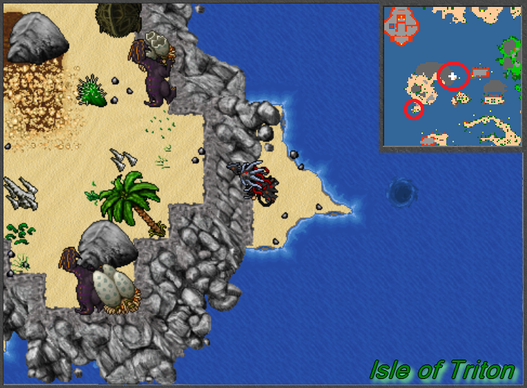 Keep in mind that on this island there will be numerous creatures that are affected by holy, death and fire and electricity. And for the most recommended defense is to use protection to Earth and drown. You will notice that there is a chest on the seashore there you can get the sea medal and then you will have to go southwest and go through a portal into the depths until you reach Triton's house.